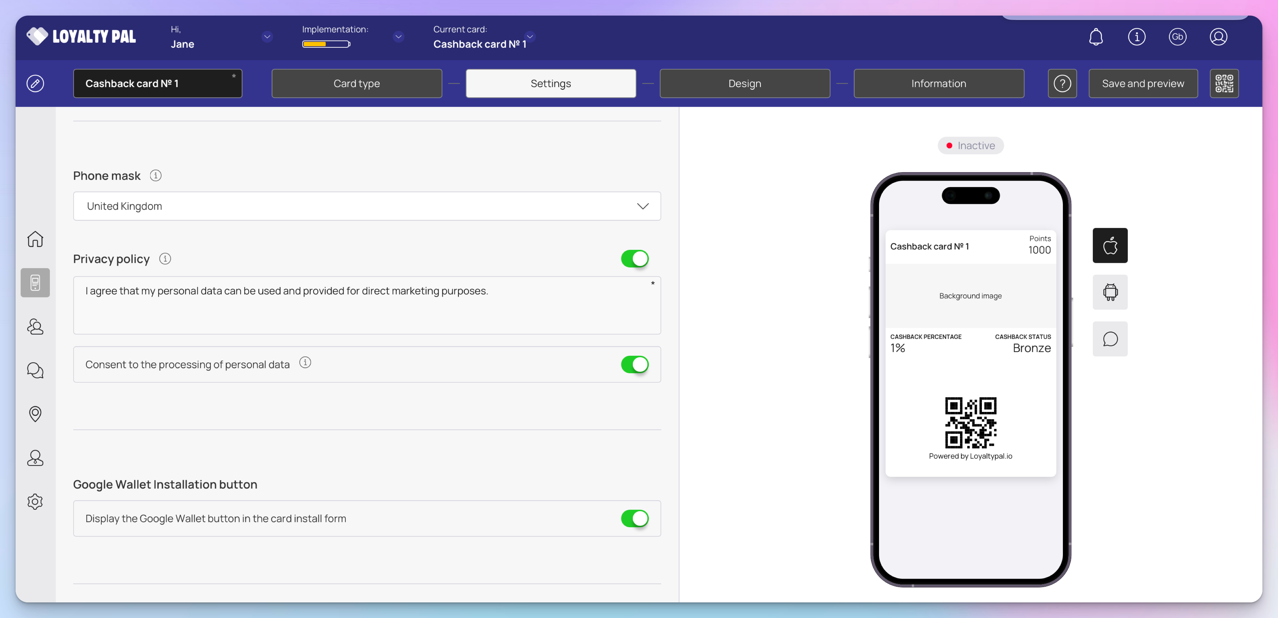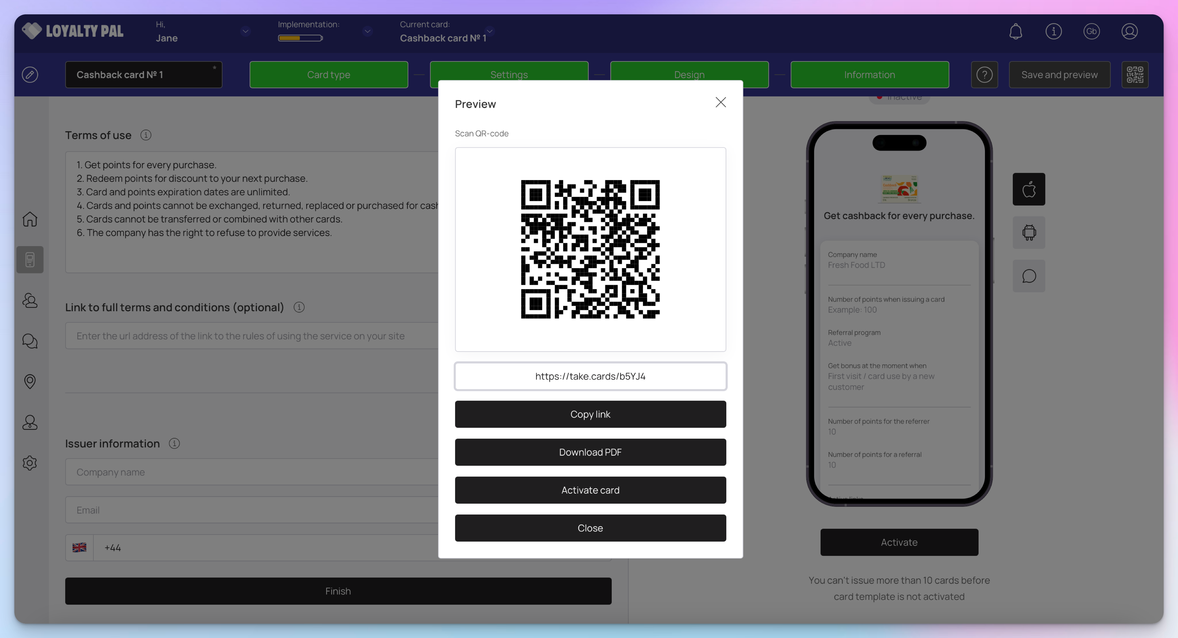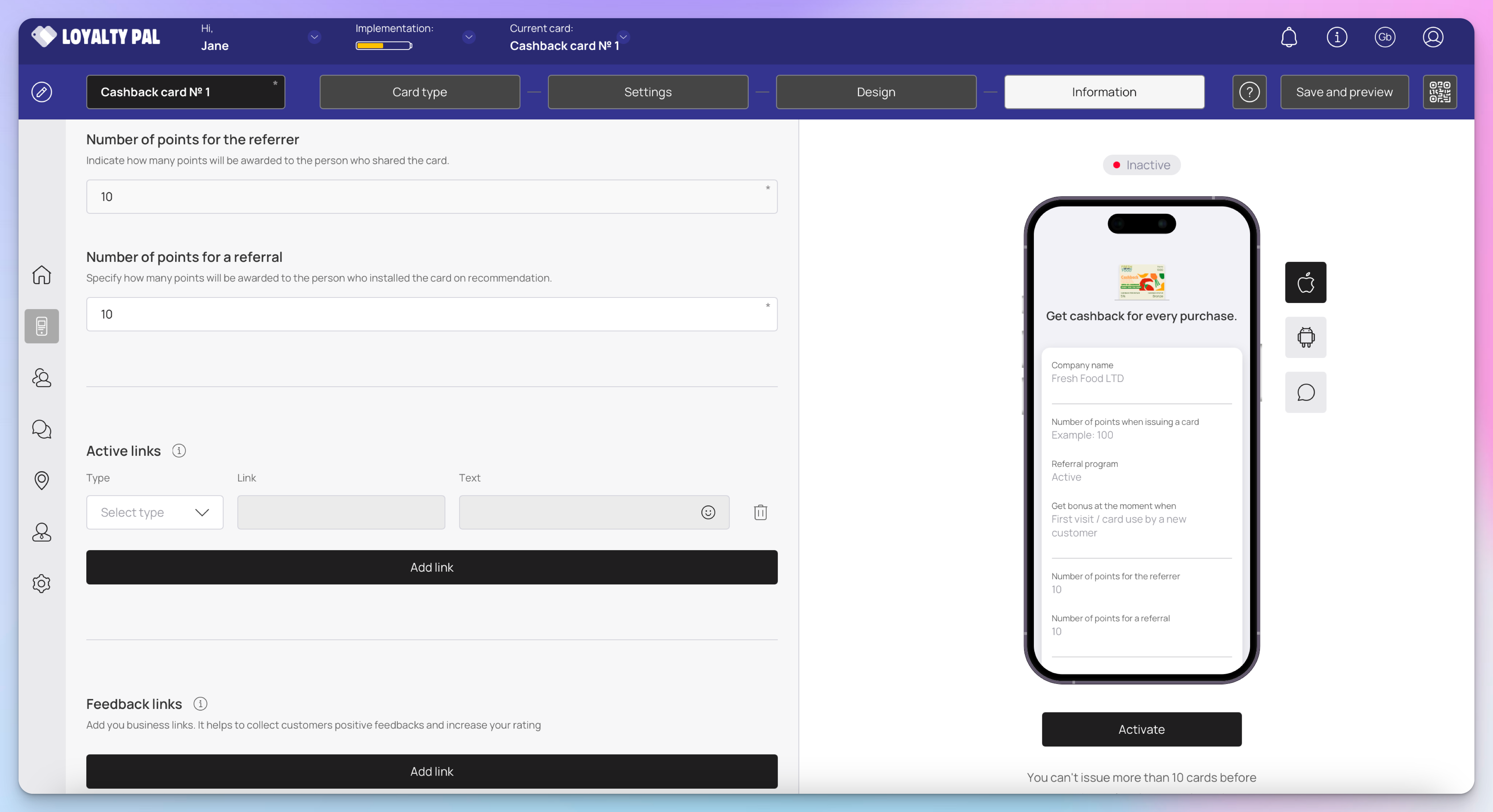 Learn how to create a digital cashback card using the LoyaltyPal platform. This comprehensive guide will walk you through each option available when setting up a cashback reward card.