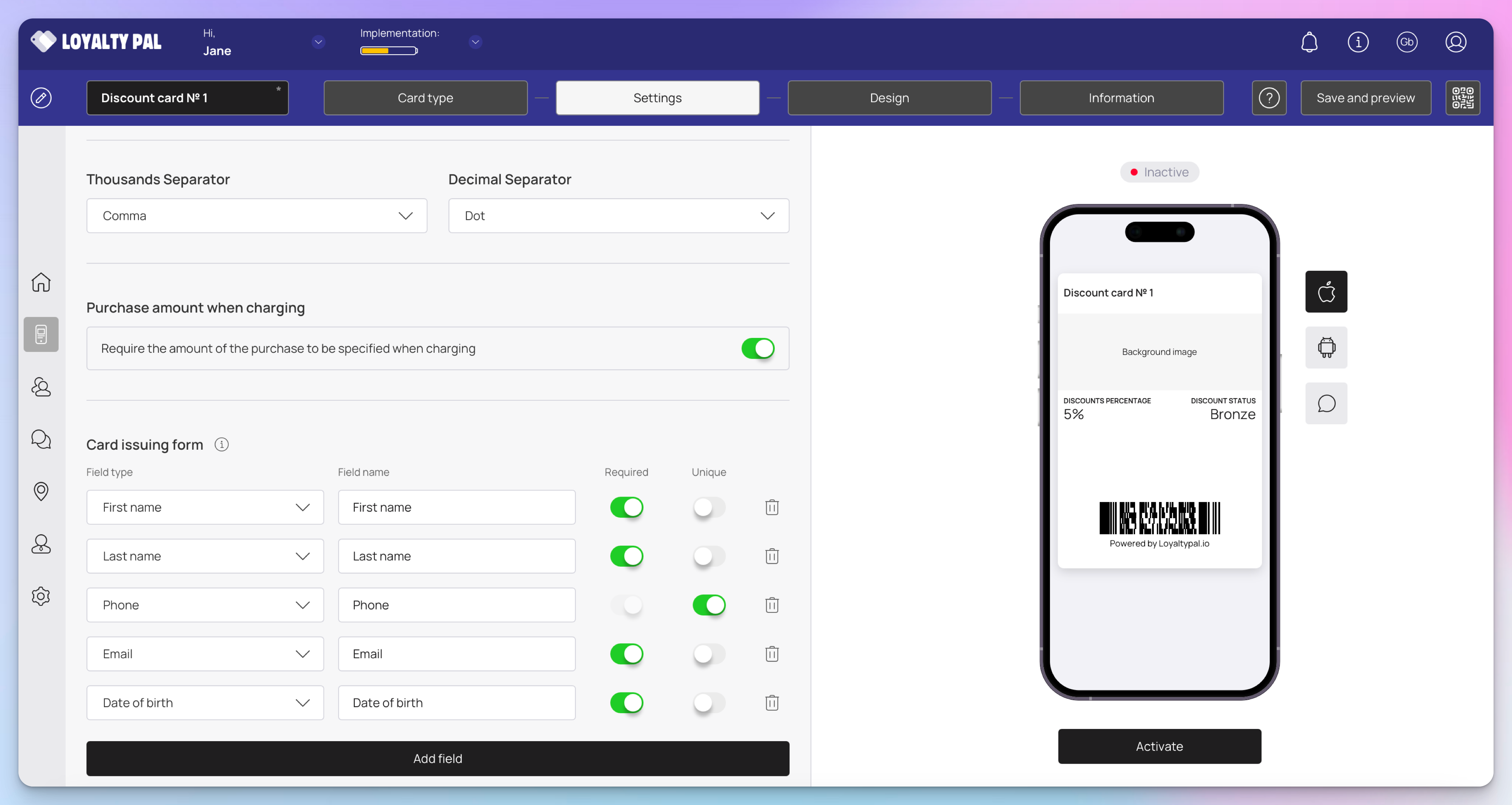 Learn how to create a digital discount card using the LoyaltyPal platform. This comprehensive guide will walk you through each option available when setting up a discount reward card.