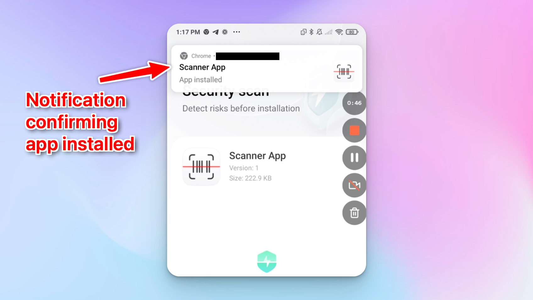 4. You will receive a notification the app is now installed. Android will now run a security scan.