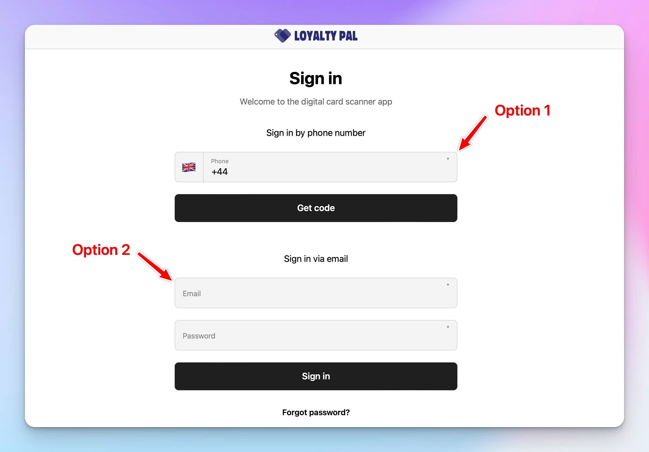 1. The Scanner App can be accessed via the following URL: https://app.loyaltypal.io/scanner-app/